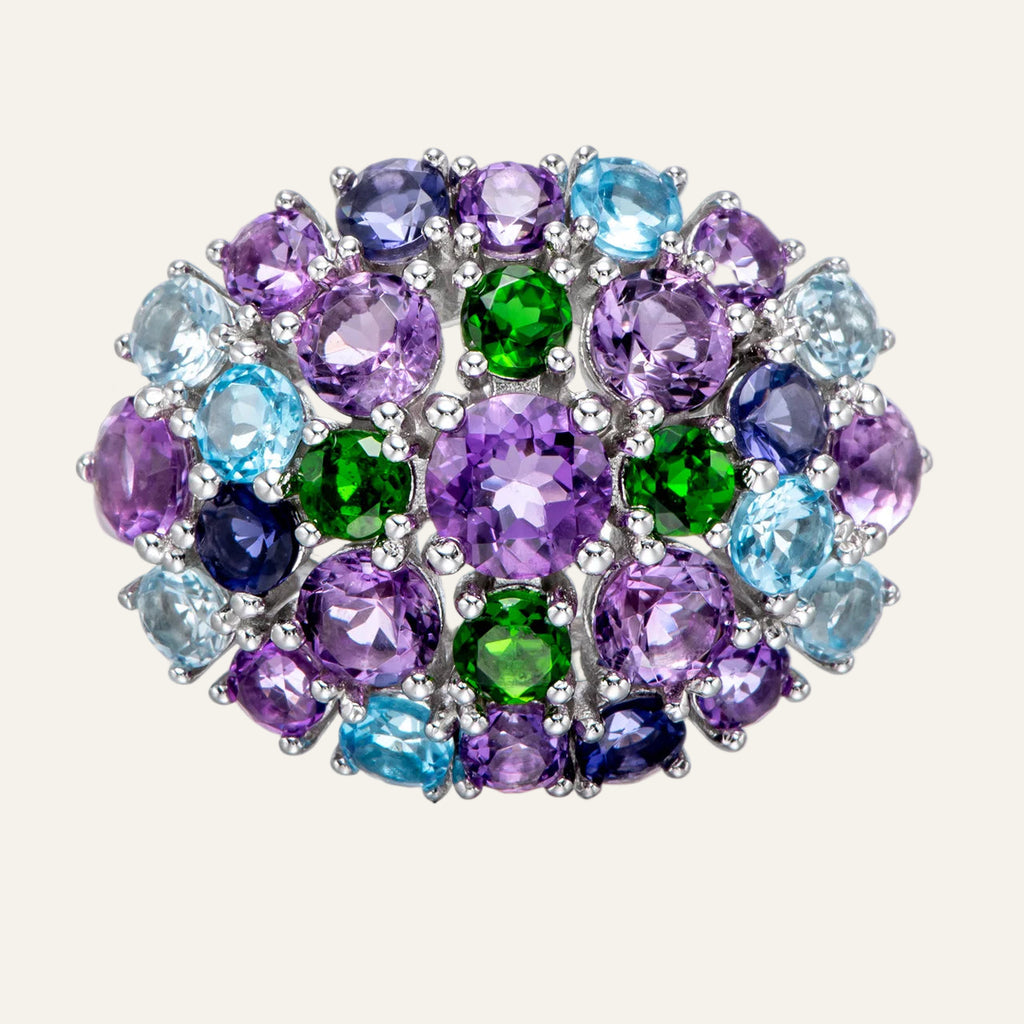 Chrome diopside and White Topaz Rhodium Over PT900 Sterling Silver Ring