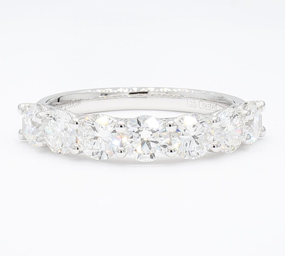 2.01 cttw 14k White Gold Round 7 Stone Wedding Band, Basket Setting